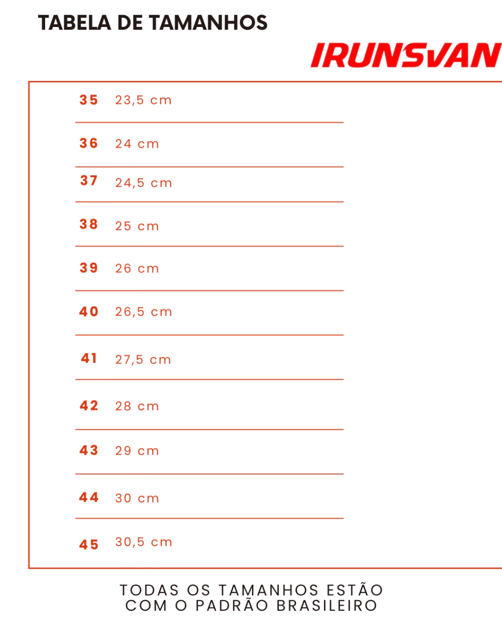 O solado de silicone completa o conjunto com alta aderência e durabilidade, mantendo o padrão de excelência da Irunsvan.
