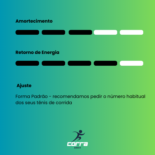 A palmilha é feita da mesma espuma supercrítica da entressola, oferecendo sensação contínua de maciez e absorção extra de impacto, complementando o conforto em longas distâncias.